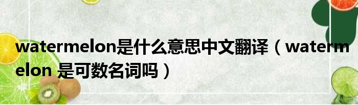 watermelon是什么意思中文翻译(watermelon 是可数名词吗)