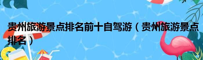贵州旅游景点排名前十自驾游(贵州旅游景点排名)