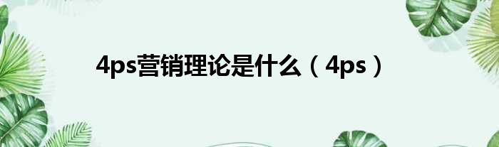 1、编辑本段基本内容 4PS 4PS是英文Product,price,place,promotion.四个单词的首字母的组合,由于是复数所以加了S.其具体意思是产品,价格,渠道,促销.这是产品企业可以操控的四个方面,通过很好的组合,可以达到很好的销售效果. 营销中4PS是一种流行的营销组合理论,通常简称4Ps,由美国密西根大学教授杰罗姆·麦卡锡1964年提出,影响深远。