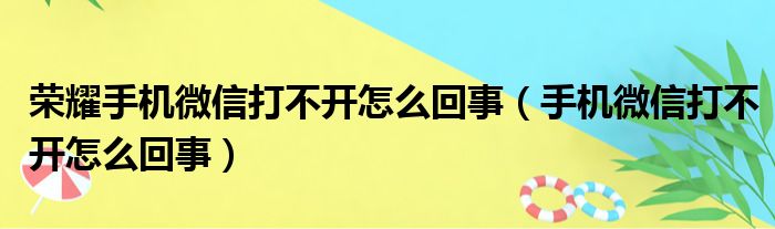 荣耀手机微信打不开怎么回事(手机微信打不开怎么回事)