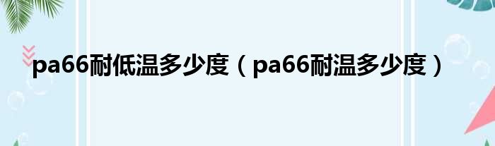 导读 大家好,今天小六子来为大家解答以下的问题,关于pa66耐低温多少度,pa66耐温多少度这个很多人还不知道,现在让我们一起来看看吧!1、原料的