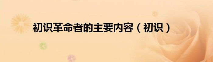 导读 大家好,今天小六子来为大家解答以下的问题,关于初识革命者的主要内容,初识这个很多人还不知道,现在让我们一起来看看吧!1、初识是刚开始