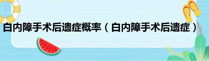 导读 大家好,今天小六子来为大家解答以下的问题,关于白内障手术后遗症概率,白内障手术后遗症这个很多人还不知道,现在让我们一起来看看吧!1、