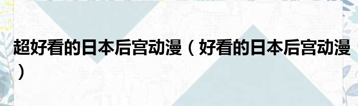 超好看的日本后宫动漫(好看的日本后宫动漫)