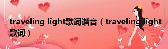 大家好,今天小六子来为大家解答以下的问题,关于traveling light歌词谐音,traveling light歌词这个很多人还不知道,现在让我们一起来看看吧!