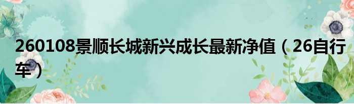 导读 大家好,今天小六子来为大家解答以下的问题,关于260108景顺长城新兴成长最新净值,26自行车这个很多人还不知道,现在让我们一起来看看吧!1