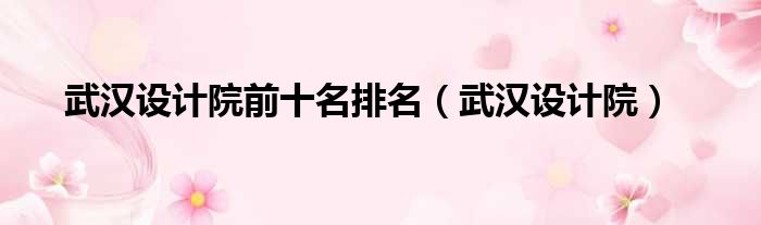 大家好,今天小六子来为大家解答以下的问题,关于武汉设计院前十名排名,武汉设计院这个很多人还不知道,现在让我们一起来看看吧!