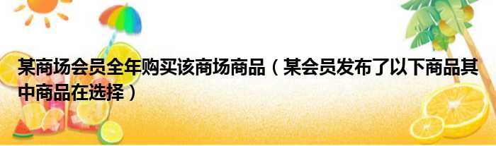 导读 大家好,今天小六子来为大家解答以下的问题,关于某商场会员全年购买该商场商品,某会员发布了以下商品其中商品在选择这个很多人还不知道,
