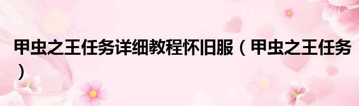 甲虫之王任务详细教程怀旧服(甲虫之王任务)