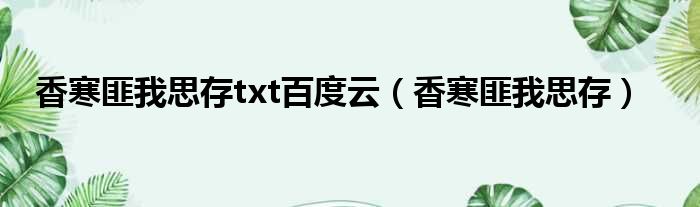 大家好,今天小六子来为大家解答以下的问题,关于香寒匪我思存txt百度云,香寒匪我思存这个很多人还不知道,现在让我们一起来看看吧!