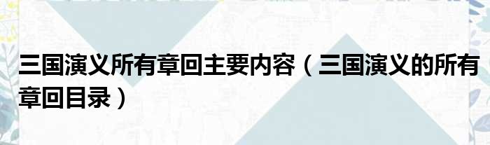 三国演义所有章回主要内容(三国演义的所有章回目录)