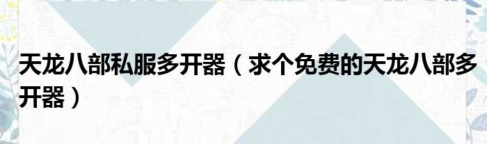 天龙八部私服多开器(求个免费的天龙八部多开器)