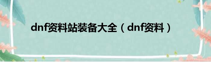 大家好,今天小六子来为大家解答以下的问题,关于dnf资料站装备大全,dnf资料这个很多人还不知道,现在让我们一起来看看吧!