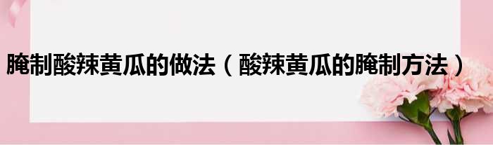 腌制酸辣黄瓜的做法(酸辣黄瓜的腌制方法)