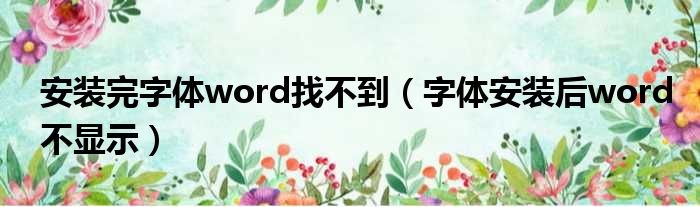 导读 大家好,今天小六子来为大家解答以下的问题,关于安装完字体word找不到,字体安装后word不显示这个很多人还不知道,现在让我们一起来看看吧