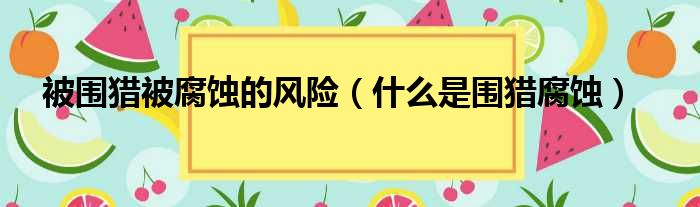 被围猎被腐蚀的风险(什么是围猎腐蚀)