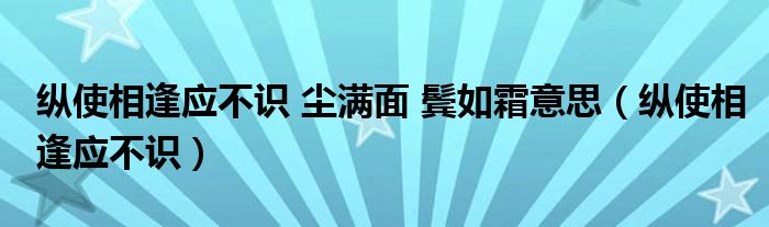 纵使相逢应不识 尘满面 鬓如霜意思(纵使相逢应不识)