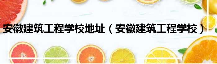 安徽建筑工程学校地址(安徽建筑工程学校)