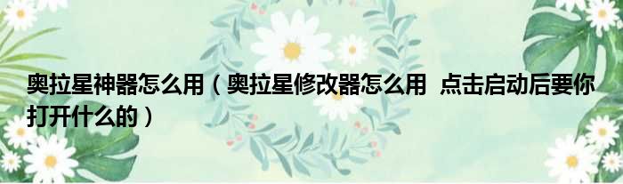 导读 大家好,今天小六子来为大家解答以下的问题,关于奥拉星神器怎么用,奥拉星修改器怎么用 点击启动后要你打开什么的这个很多人还不知道,