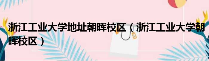 浙江工业大学地址朝晖校区(浙江工业大学朝晖校区)