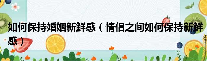 如何保持婚姻新鲜感(情侣之间如何保持新鲜感)