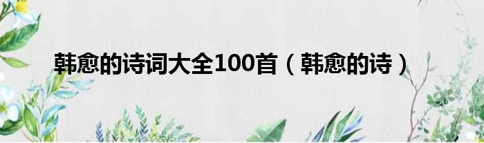 大家好,今天小六子来为大家解答以下的问题,关于韩愈的诗词大全100首,韩愈的诗这个很多人还不知道,现在让我们一起来看看吧!