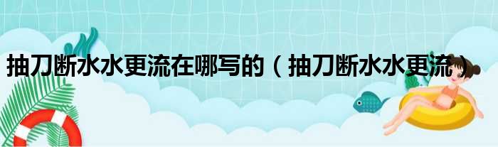 大家好,今天小六子来为大家解答以下的问题,关于抽刀断水水更流在哪写的,抽刀断水水更流这个很多人还不知道,现在让我们一起来看看吧!