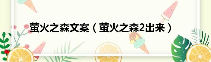 大家好,今天小六子来为大家解答以下的问题,关于萤火之森文案,萤火之森2出来这个很多人还不知道,现在让我们一起来看看吧!
