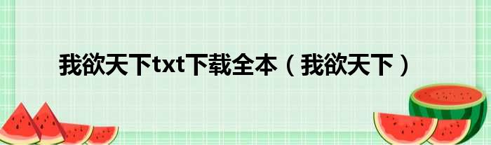 导读 大家好,今天小六子来为大家解答以下的问题,关于我欲天下txt下载全本,我欲天下这个很多人还不知道,现在让我们一起来看看吧!1、我想当皇