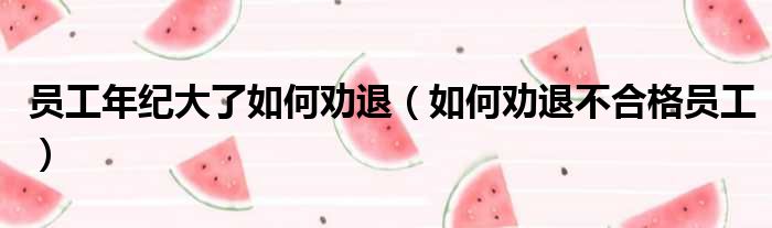 导读 大家好,今天小六子来为大家解答以下的问题,关于员工年纪大了如何劝退,如何劝退不合格员工这个很多人还不知道,现在让我们一起来看看吧!1