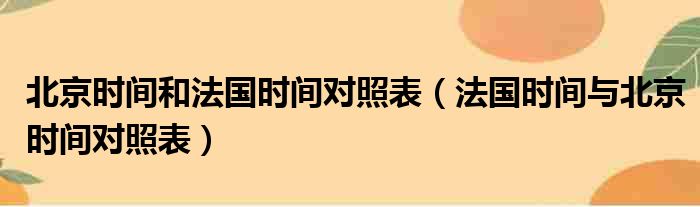 导读 大家好,今天小六子来为大家解答以下的问题,关于北京时间和法国时间对照表,法国时间与北京时间对照表这个很多人还不知道,现在让我们一起