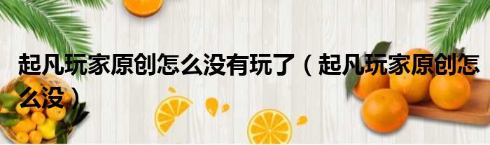 起凡玩家原创怎么没有玩了(起凡玩家原创怎么没)