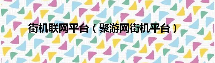 街机联网平台(聚游网街机平台)