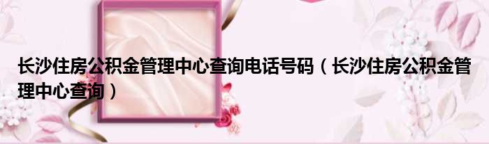 长沙住房公积金管理中心查询电话号码(长沙住房公积金管理中心查询)