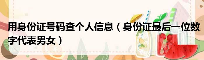 导读 大家好,今天小六子来为大家解答以下的问题,关于用身份证号码查个人信息,身份证最后一位数字代表男女这个很多人还不知道,现在让我们一起