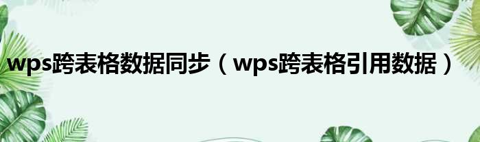 wps跨表格数据同步(wps跨表格引用数据)