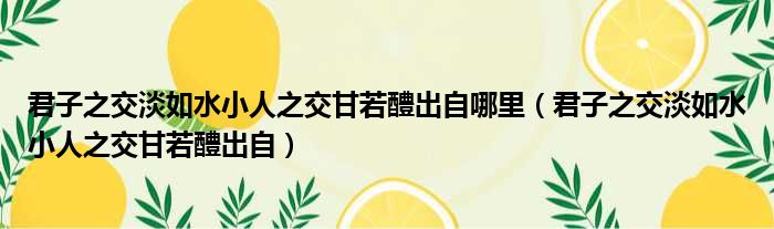 君子之交淡如水小人之交甘若醴出自哪里(君子之交淡如水小人之交甘若醴出自)