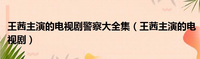 王茜主演的电视剧警察大全集(王茜主演的电视剧)