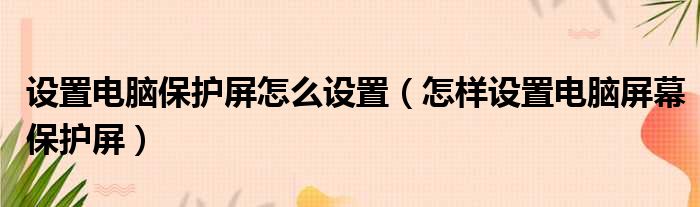 设置电脑保护屏怎么设置(怎样设置电脑屏幕保护屏)