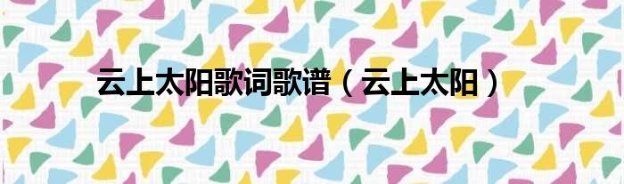 云上太阳歌词歌谱(云上太阳)