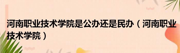 河南职业技术学院是公办还是民办(河南职业技术学院)