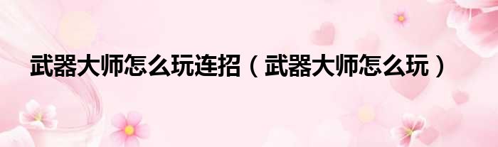 大家好,今天小六子来为大家解答以下的问题,关于武器大师怎么玩连招,武器大师怎么玩这个很多人还不知道,现在让我们一起来看看吧!