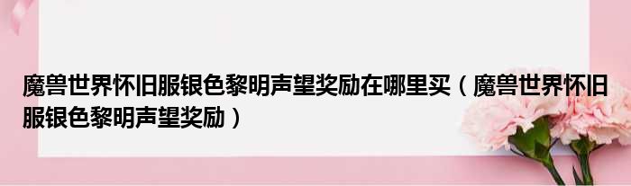 魔兽世界怀旧服银色黎明声望奖励在哪里买(魔兽世界怀旧服银色黎明声望奖励)