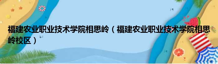 福建农业职业技术学院相思岭(福建农业职业技术学院相思岭校区)