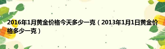 导读 大家好,今天小六子来为大家解答以下的问题,关于2016年1月黄金价格今天多少一克,2013年1月1日黄金价格多少一克这个很多人还不知道,现在让