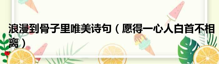 浪漫到骨子里唯美诗句(愿得一心人白首不相离)