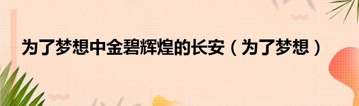 为了梦想中金碧辉煌的长安(为了梦想)