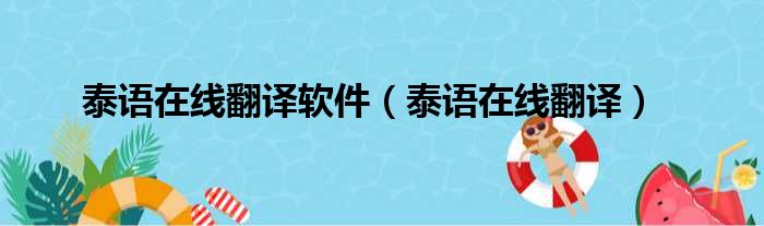 泰语在线翻译软件(泰语在线翻译)