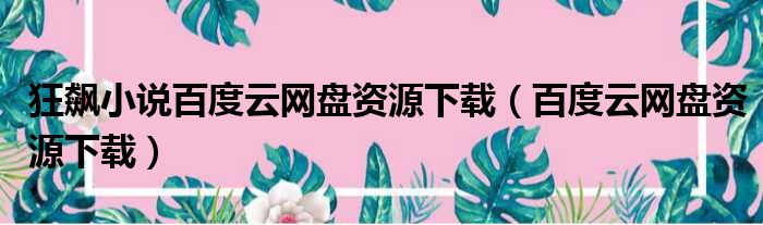 狂飙小说百度云网盘资源下载(百度云网盘资源下载)
