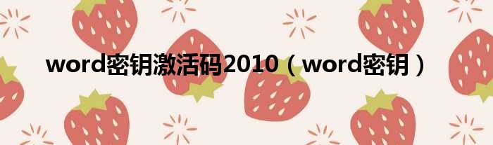 大家好,今天小六子来为大家解答以下的问题,关于word密钥激活码2010,word密钥这个很多人还不知道,现在让我们一起来看看吧!